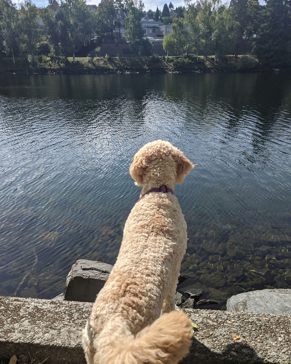 12:30 p.m.: Grab lunch, usually a salad of salmon and lots of veggies, and eat outside, weather permitting. The office is right on Lake Union, so the views from the steps along the water are gorgeous. It's even better when Dooglers (Googlers' pet dogs) are involved.